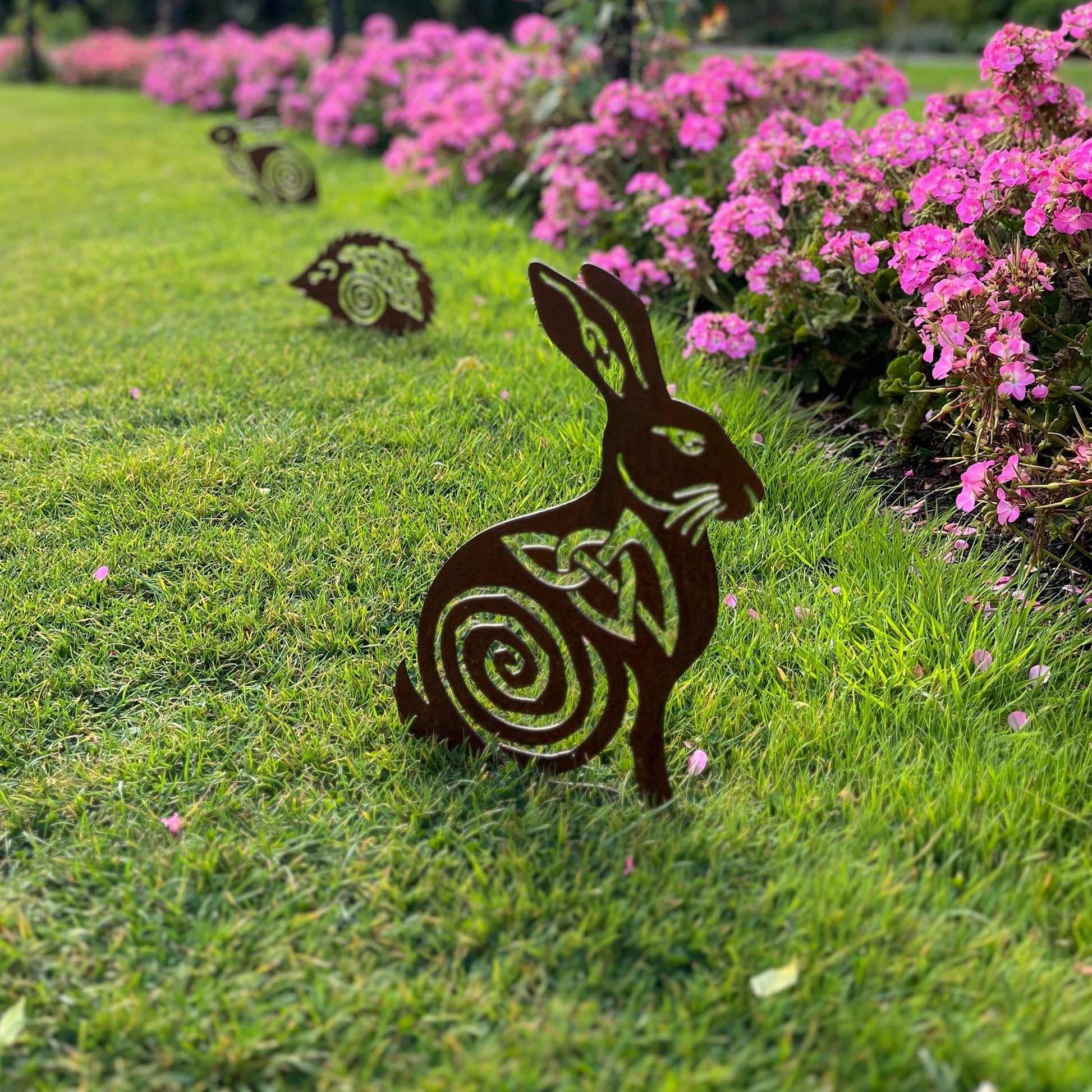 Bring a touch of rural quiet to your home with this handcrafted rusted metal rabbit sculpture. Its distinctive gentle, sitting silhouette and naturally aged finish create a subtle charm and pastoral theme that enhances any garden or patio.